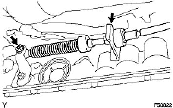 (d) Connect the transmission control cable with the 2 nuts to the body.