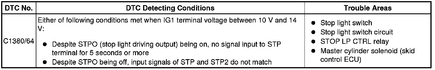 DTC C1380/64 - Stop Light Control Relay Malfunction