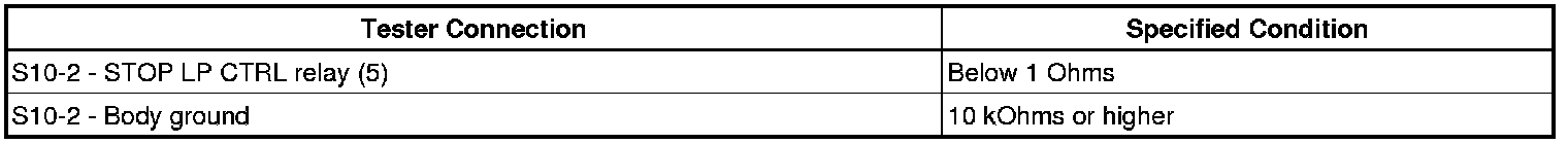 NG -- REPAIR OR REPLACE HARNESS OR CONNECTOR (STOP LP CTRL RELAY)