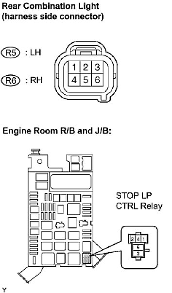 14. CHECK HARNESS AND CONNECTOR (REAR COMBINATION LIGHT - STOP LP CTRL RELAY)