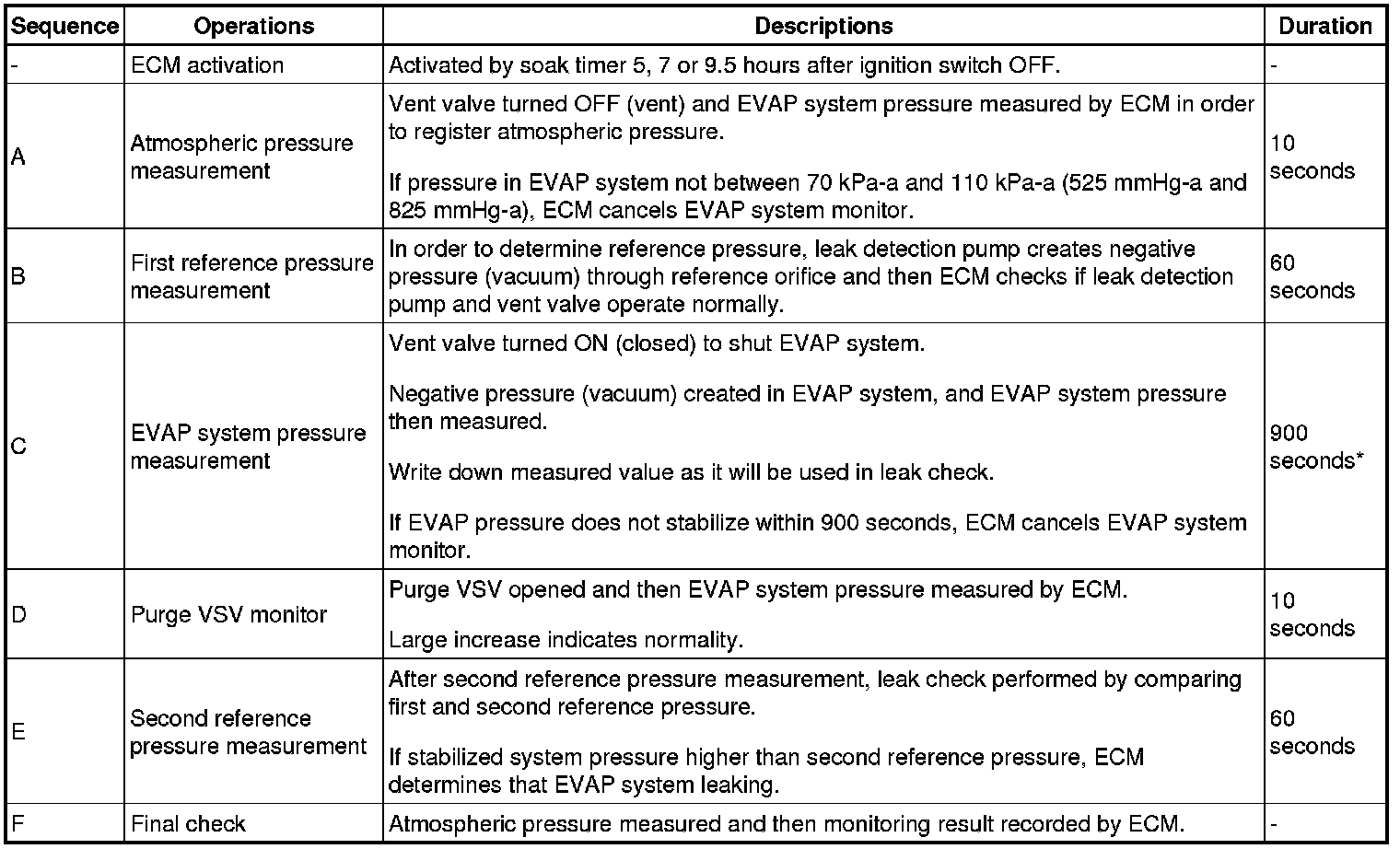 HINT: A few minutes are required for the EVAP pressure to become saturated. When there is little fuel in the fuel tank, it takes up to 15 minutes (900 seconds).