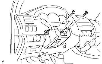(b) Disengage the 2 claws to remove the lower steering column cover.