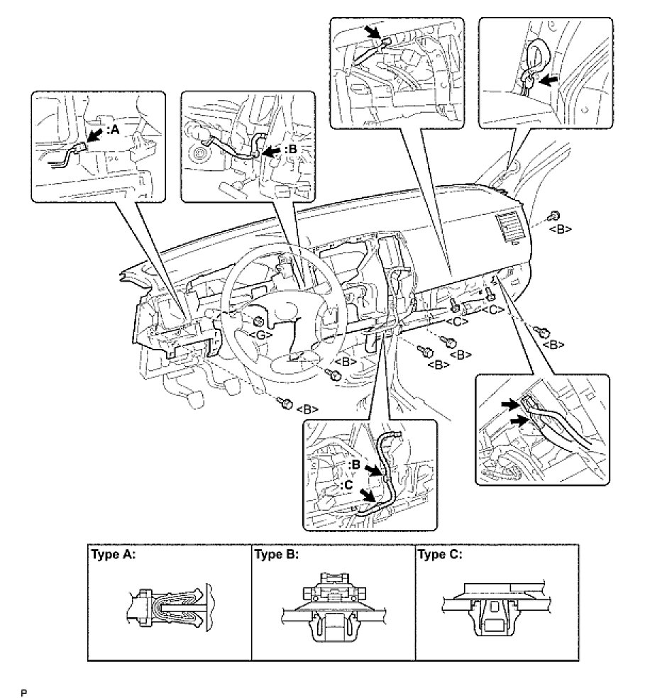 (c) Attach the stopper to the instrument panel at the hole labeled A as shown in the illustration.