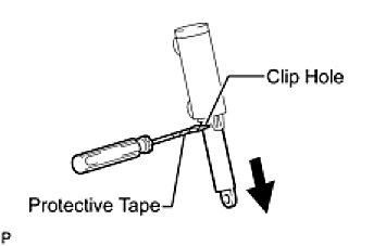 (b) Insert the tip of a small flat-blade screwdriver into the clip hole to prevent the bottom of the stopper from retracting.