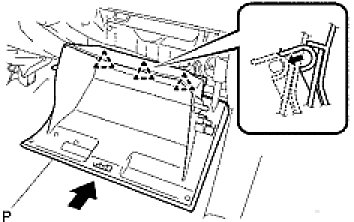 (f) Install the glove compartment door assembly with 3 hinges, holding it horizontal.
