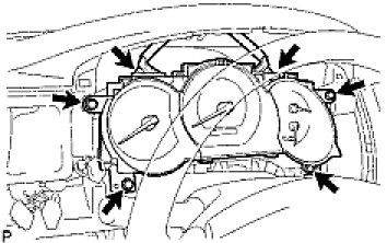 (b) Install the combination meter assembly with the 4 screws [E].