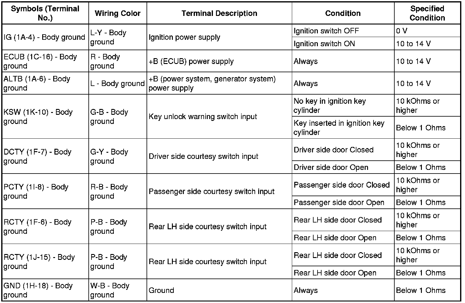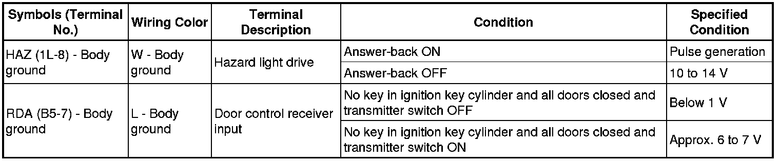 - If the result is not as specified, there may be a malfunction on the driver side J/B assembly (multiplex network body ECU).