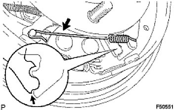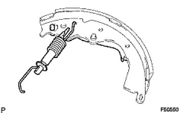 (c) Install the tension spring onto the front brake shoe and rear brake shoe.