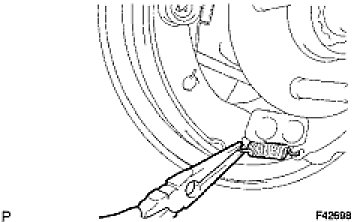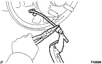 (d) Using needle-nose pliers, connect the parking brake cable No. 3 to the parking brake shoe lever LH.