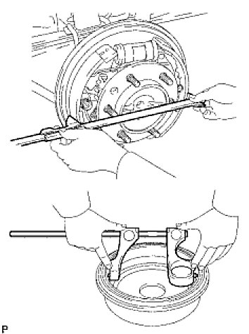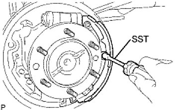 (b) Using SST, install the front brake shoe, pin, shoe hold down spring and shoe hold down spring cup.