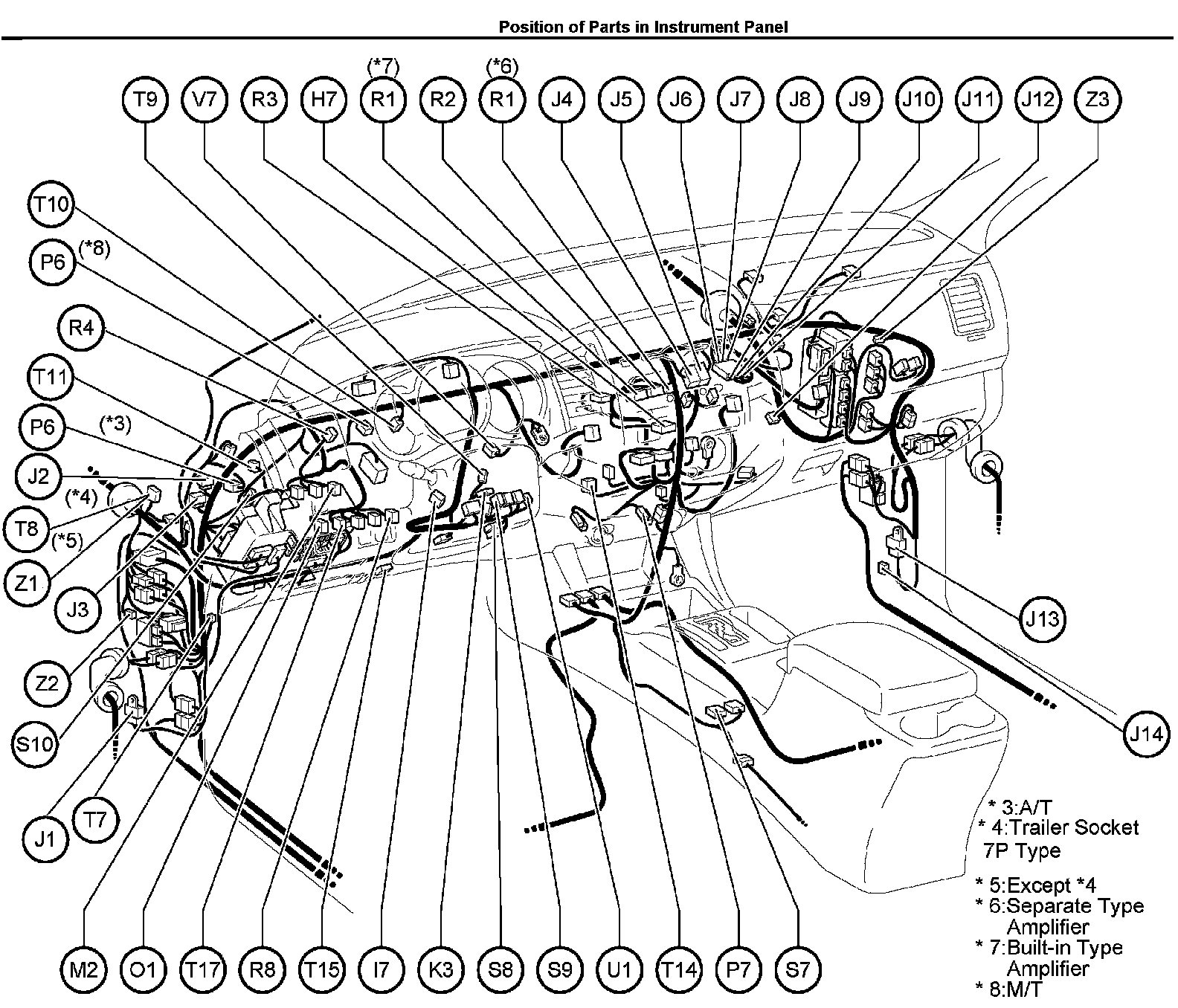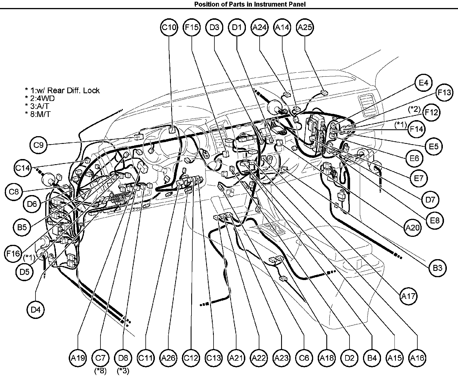 Position of Parts in Instrument Panel: