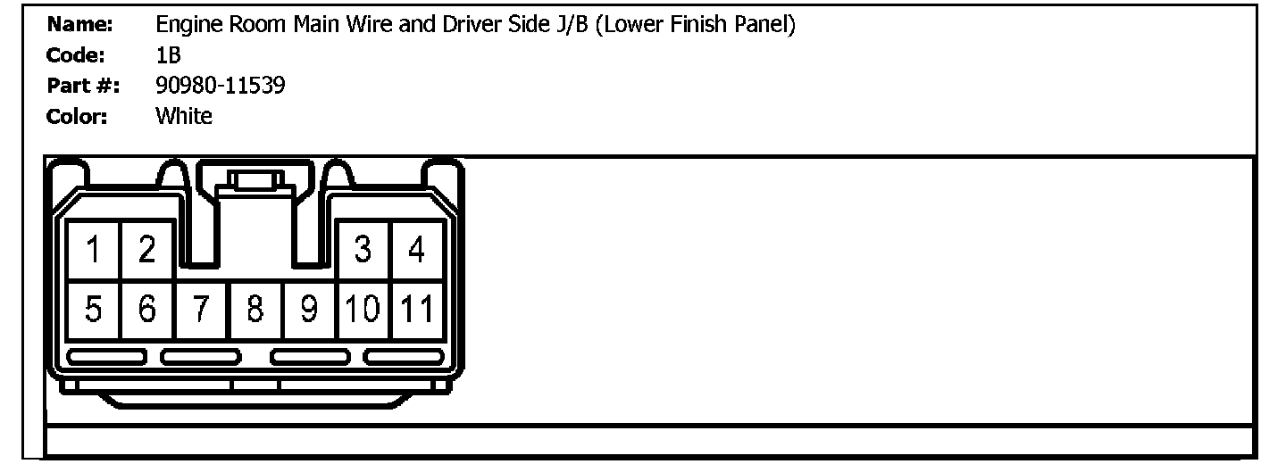 1B (Engine Room Main Wire and Driver Side J/B (Lower Finish Panel)):