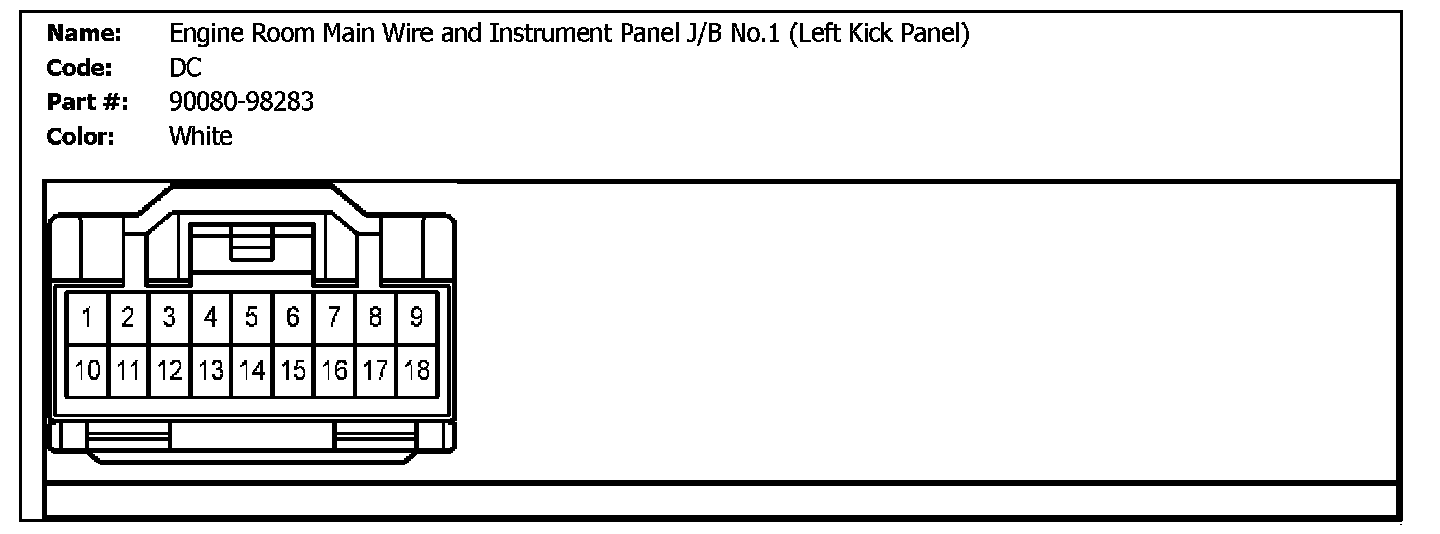 DC (Engine Room Main Wire and Instrument Panel J/B No.1 (Left Kick Panel)):