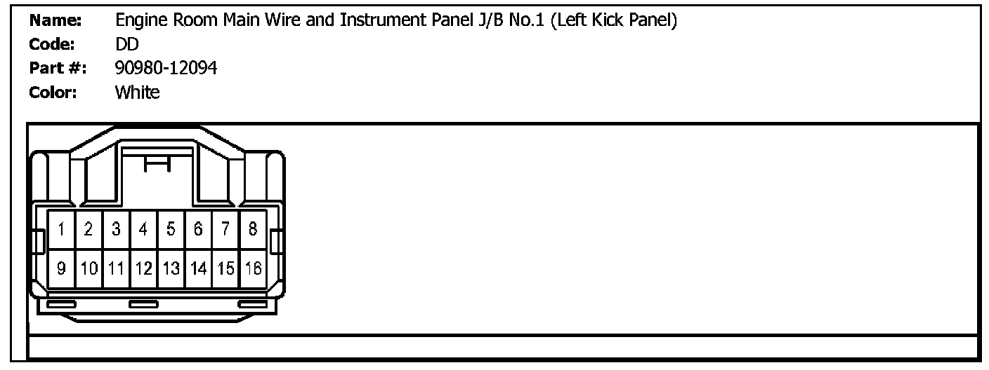 DD (Engine Room Main Wire and Instrument Panel J/B No.1 (Left Kick Panel)):