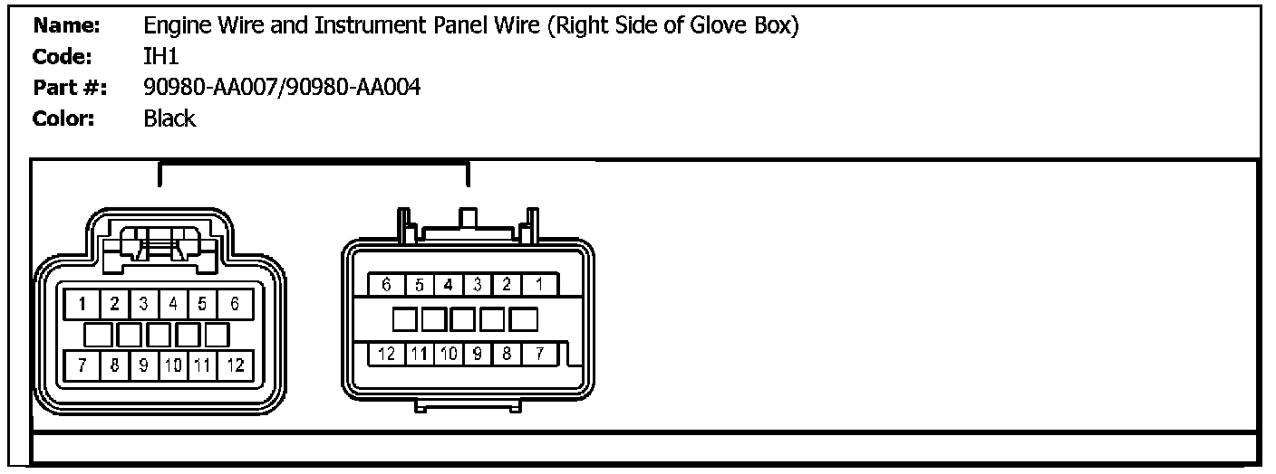 IH1 (Engine Wire and Instrument Panel Wire (Right Side of Glove Box)):