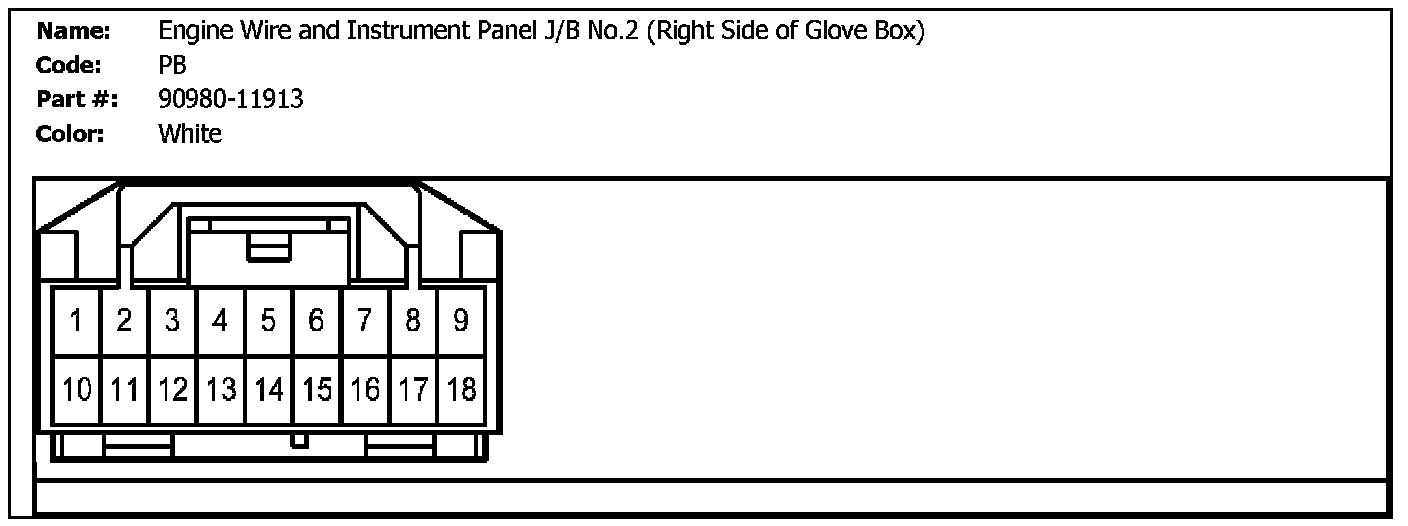 PB (Engine Wire and Instrument Panel J/B No. 2 (Right Side of Glove Box)):