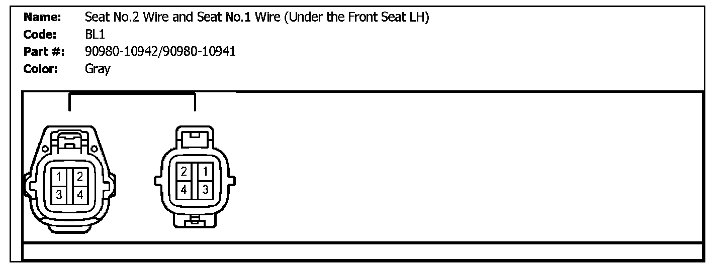 BL1 (Seat No.2 Wire and Seat No.1 Wire (Under the Front Seat LH)):