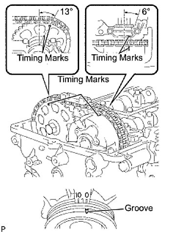 (a) Turn the crankshaft pulley, and align its groove with timing mark 0 of the timing chain cover.