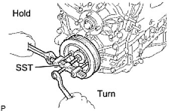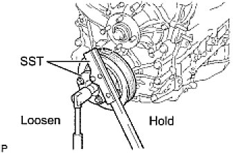(c) Using SST, loosen the crankshaft pulley bolt.