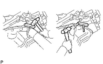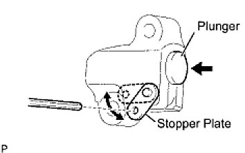 (a) Move the stopper plate upward to release the lock, and push the plunger deep into the tensioner.