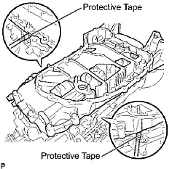 (c) Insert the blade of oil pan seal cutter between the oil pans. Cut through the applied sealer and remove the oil pan sub-assembly No.2.