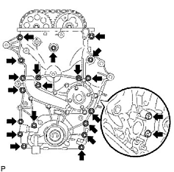 (a) Remove the 19 bolts and 2 nuts as shown in the illustration.