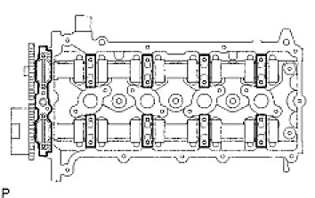 (b) Check that the timing marks of the camshaft timing gear and sprocket are aligned with the timing marks of the bearing cap No.1, as shown in the illustration.