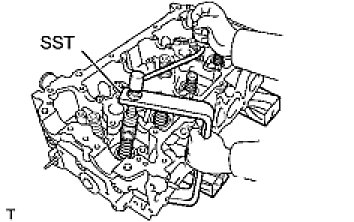(a) Using SST and wooden blocks, compress the compression spring and remove the valve retainer locks.