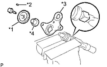 (c) Remove the balanceshaft driven gear No.1 (*1), sliding key (*2), balanceshaft thrust washer No.1 (*3) and balanceshaft thrust spacer (*4).