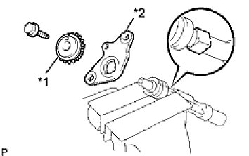 (c) Remove the balanceshaft driven gear No.2 (*1) and balanceshaft thrust washer No.2 (*2).