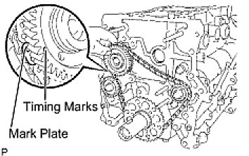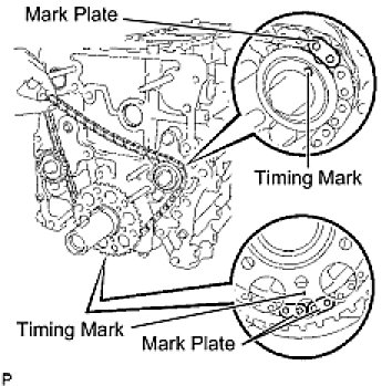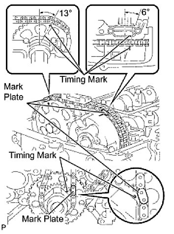 (a) As shown in the illustration, install the chain on the sprocket and gear with the painted marks aligned with the timing marks on the sprocket and gear.