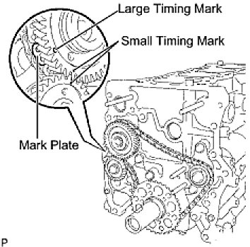 (c) Fit the other mark link of the crankshaft timing sprocket behind the large timing mark of the balanceshaft drive gear.