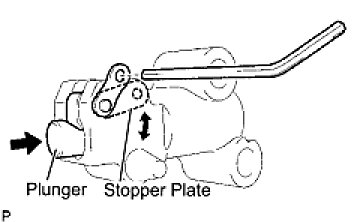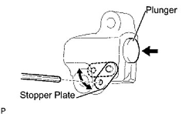(b) Move the stopper plate downward to release the lock, and push the plunger deep into the tensioner.