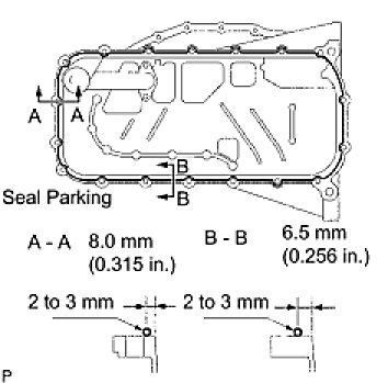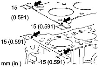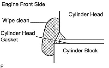 (a) Apply a continuous bead (seal width: 4 to 7 mm (0.15 to 0.28 in.)) of seal packing to the cylinder block upper side and cylinder head gasket upper side as shown in the illustration.