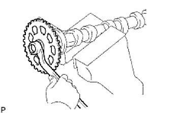 (a) Clamp the camshaft in a vise and then install the camshaft timing sprocket to the camshaft with the sprocket bolt.