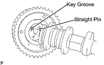 (a) Put the camshaft timing gear and camshaft together by aligning the key groove and straight pin.