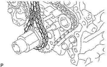 (b) Use a rope to tie the chain of the crankshaft timing sprocket. Tie the rope near the sprocket.