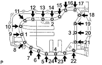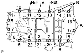 (c) Uniformly tighten the 18 bolts and 2 nuts in the sequence shown in the illustration.