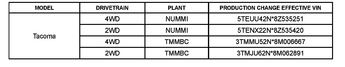 This TSB applies to vehicles produced BEFORE the Production Change Effective VINs shown.