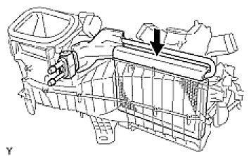 (b) Apply the heater core long seal to the upper and lower sides of the heater core.