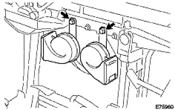 (a) Place the stay onto the baffle part in the upper radiator support, and then install the horn with the bolt.