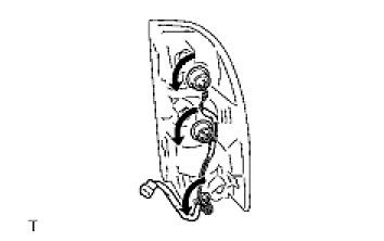 (e) To remove the 3 light bulb sockets and 3 bulbs, turn them in the direction indicated by the arrow in the illustration.