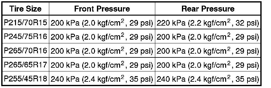 Cold tire inflation pressure: