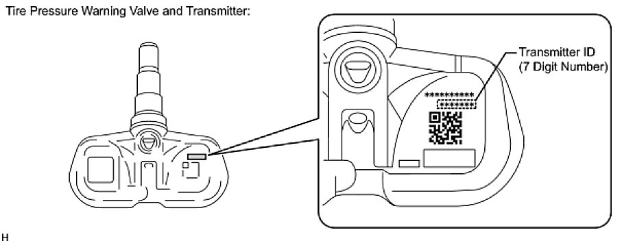 (1) Take a note of the 7 digit number (transmitter ID) written on the new tire pressure warning valve and transmitter when replacing the old one. Register the transmitter ID in the tire pressure warning ECU after replacing the tire pressure warning valve and transmitter and installing the tires and wheels on the vehicle.