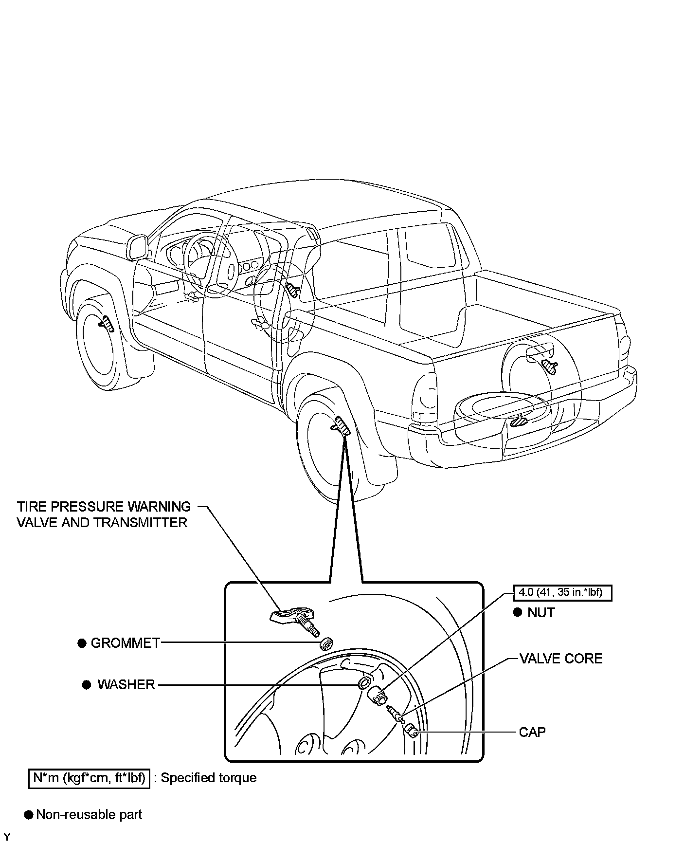 TIRE AND WHEEL: TIRE PRESSURE WARNING VALVE AND TRANSMITTER: