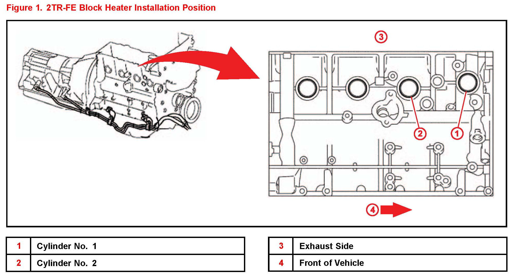 2. Install a NEW block heater and harness into the right (passenger) side tight plug of cylinder No.2 (see Figure 1).