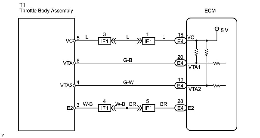 The ECM constantly generates 5 V power from the battery voltage supplied to the +B (BATT) terminal to operate the microprocessor. The ECM also provides this power to the sensors through the VC output circuit.