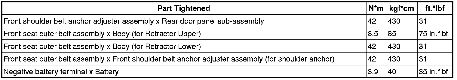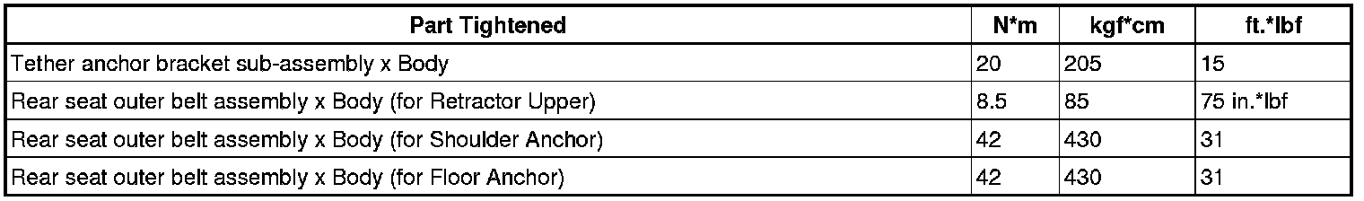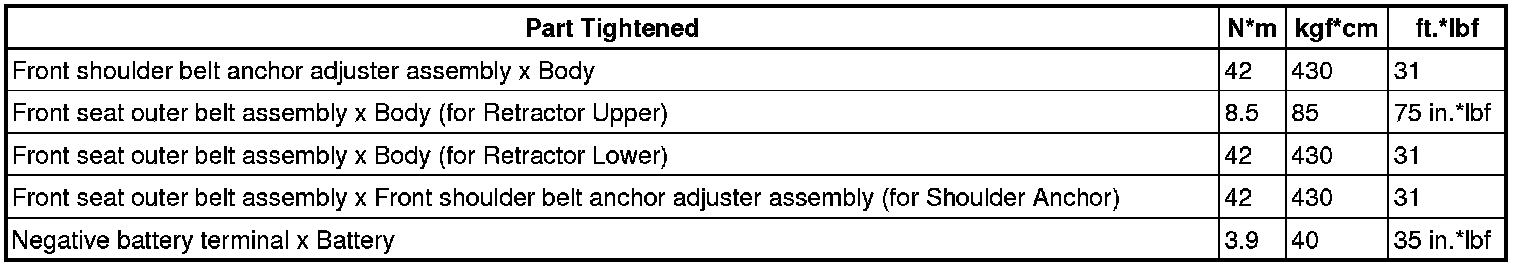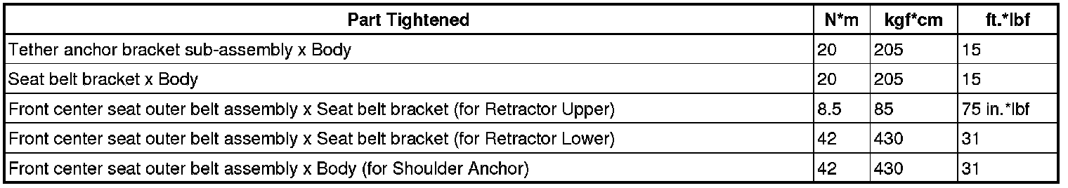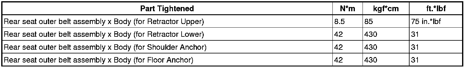 SERVICE SPECIFICATIONS: SEAT BELT: TORQUE SPECIFICATIONS
