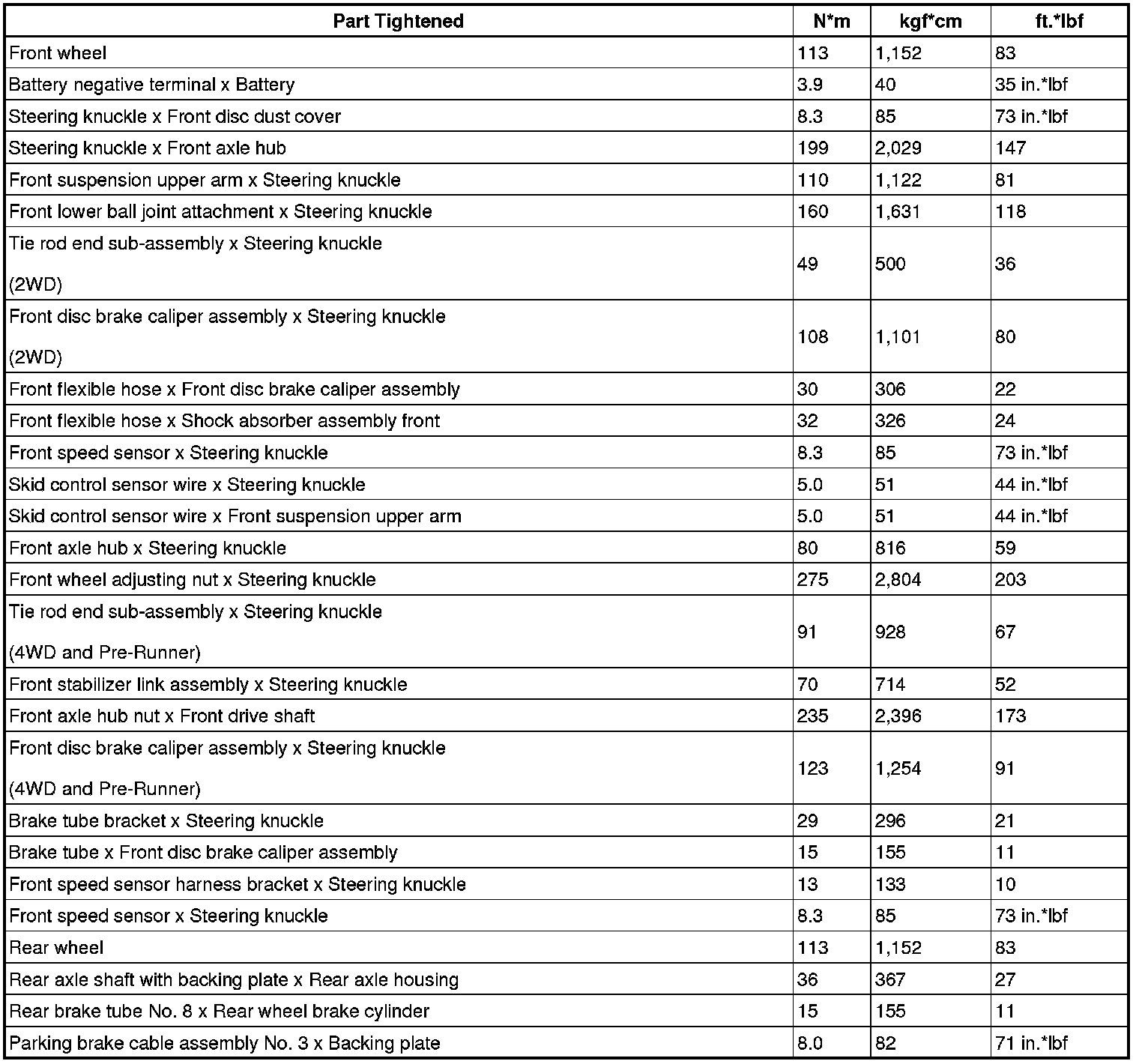 Torque Specifications