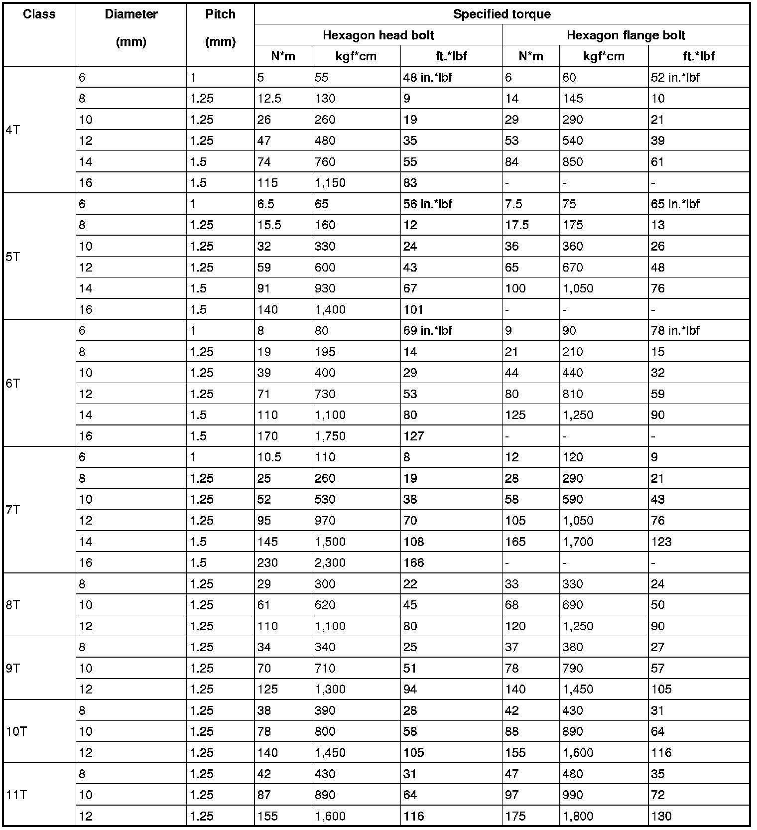 SPECIFIED TORQUE FOR STANDARD BOLTS